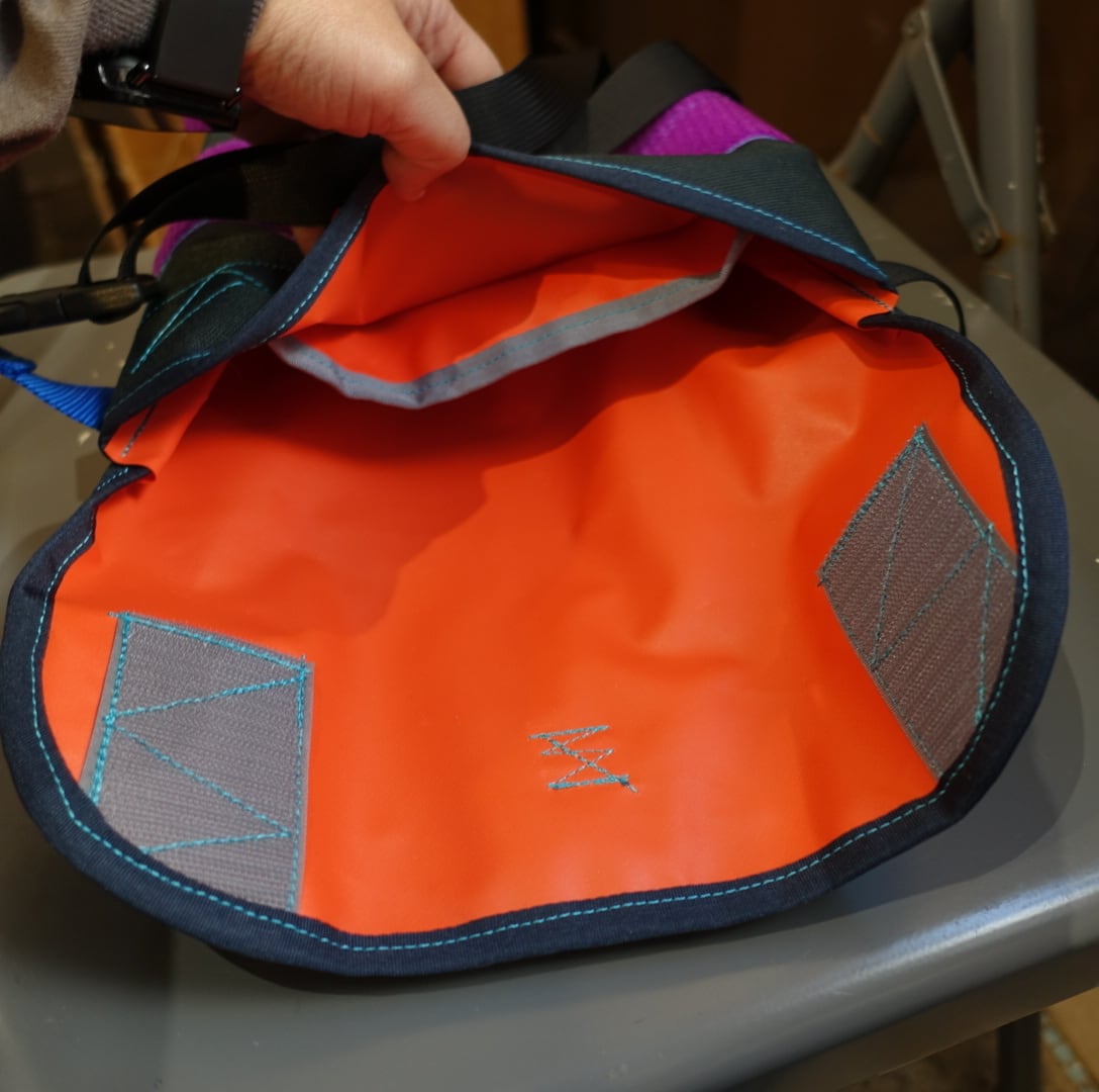 耐久性の高いコーデュラナイロン1000Dに即興スティッチ。
